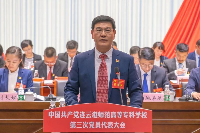 杨浩代表中国共产党连云港师范高等专科学校第二届委员会向大会作了题为《把握新机遇奋进新征程决胜创成特色鲜明的师范本科院校》的报告。报告回顾了过去五年学校取得的各项成就,谋划了学校今后五年的目标任务,并对坚持和加强党的全面领导提出要求。