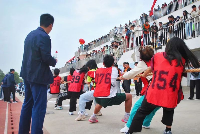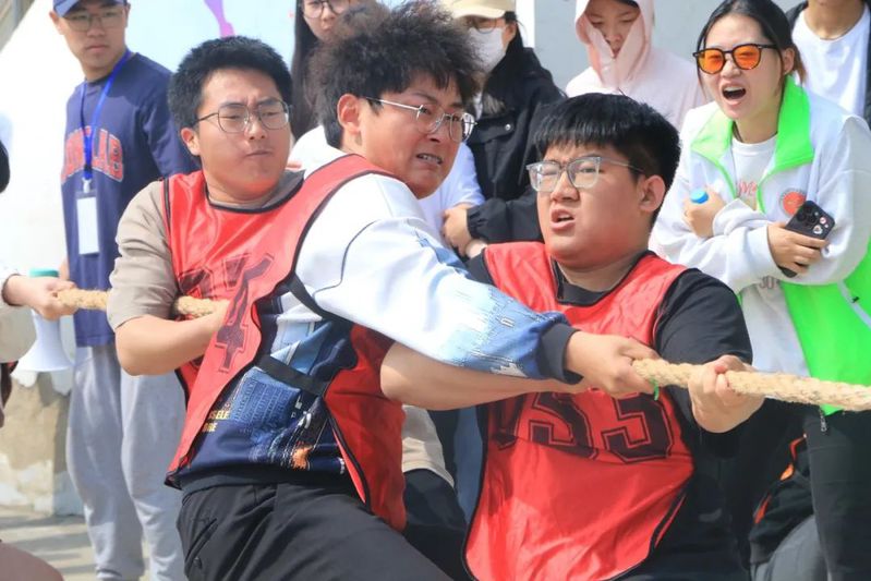 一条绳一条心,一声哨响齐心协力,握紧绳子目光坚毅,一个个重心下移,凝聚集体向心力,增强集体的荣辱感,拔河,为自己的队伍拼尽全力