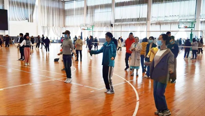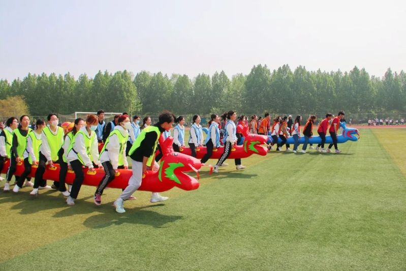 旱地龙舟嗨翻校园,选手们跨坐在龙舟上,伴着“一二一、一二一”,整齐有序的口号声,奋力前行,比赛现场,呐喊助威声响彻天际,现场气氛紧张而热烈。