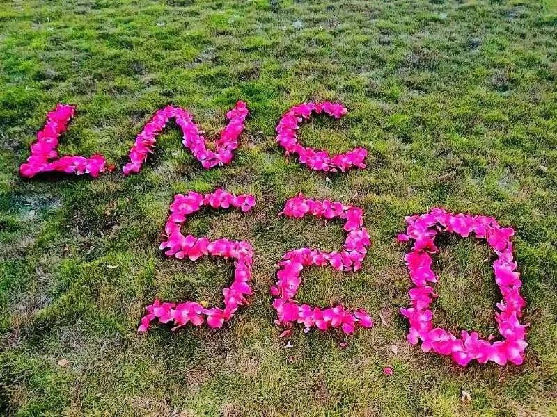 夏日校园里的月季芬芳艳美幽香扑鼻,芳草鲜美落英缤纷,学子们创意拼绘诚意满满,用最特别的方式,表达着对连师专的爱意。
