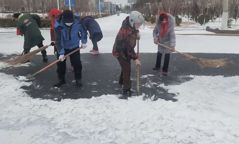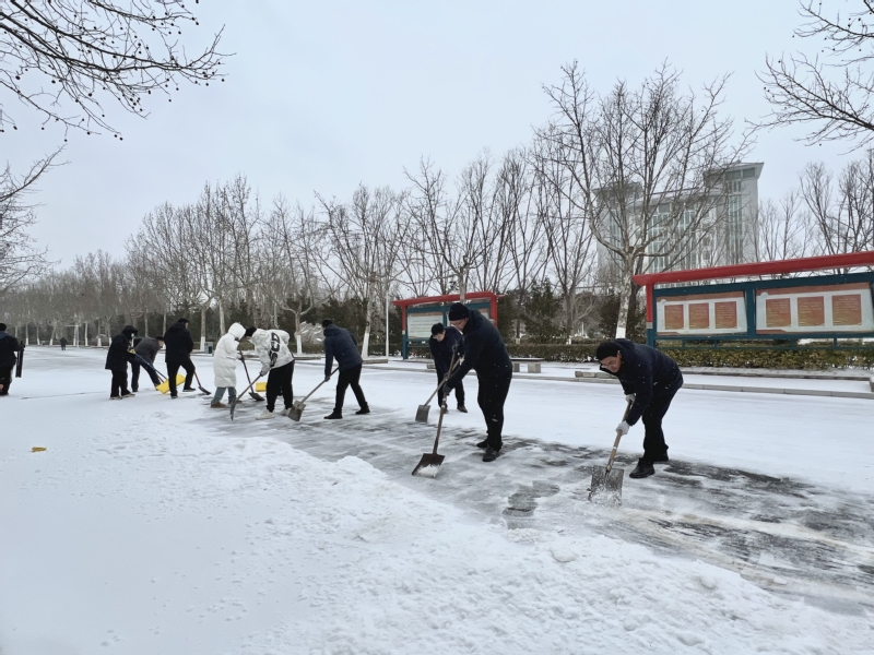 在此次校园铲雪除冰行动中,我校党员职工率先垂范,冲锋在前,后勤保洁人员主动作为,迅速行动,大家分工合作、互相配合,拿起铁锹、雪铲、扫帚,共同开辟出整洁通畅的道路,用实际行动做好强降雪天气应对工作,全力保障广大师生安全。
