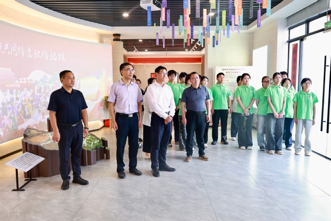 在连云港市委统战部副部长、连云港市民宗局局长刘峰等领导的陪同下,杨浩一行先后参观了“多元一体共创辉煌”“籽籽同心 共襄伟业”“榴连山海 共书华章”“手足相亲 共启新篇”等展区。通过参观文物、体感互动、观看投影等形式,进一步学习感悟各民族在历史长河中交往交流交融的生动历程,本地各民族群众守望相助、共筑家园的鲜活实践和中华优秀传统文化作为民族团结精神纽带的深厚力量。
