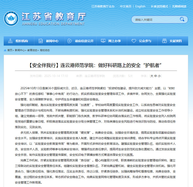 【江苏省教育厅】【安全伴我行】连云港师范学院:做好科研路上的安全“护航者”