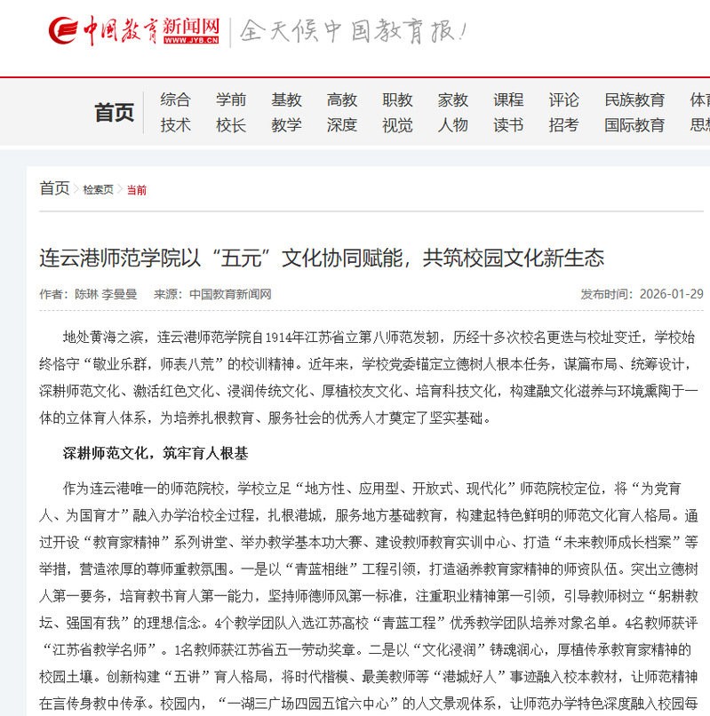 【中国教育新闻网】连云港师范学院以“五元”文化协同赋能,共筑校园文化新生态