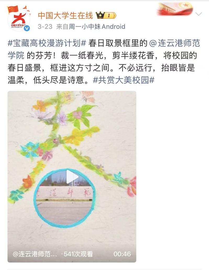 【中国大学生在线】春日取景框里的@连云港师范学院 的芬芳!