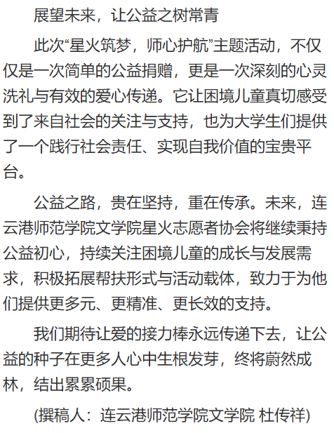 【中华网】连云港师范学院“星火筑梦,师心护航”校园公益主题活动圆满结束