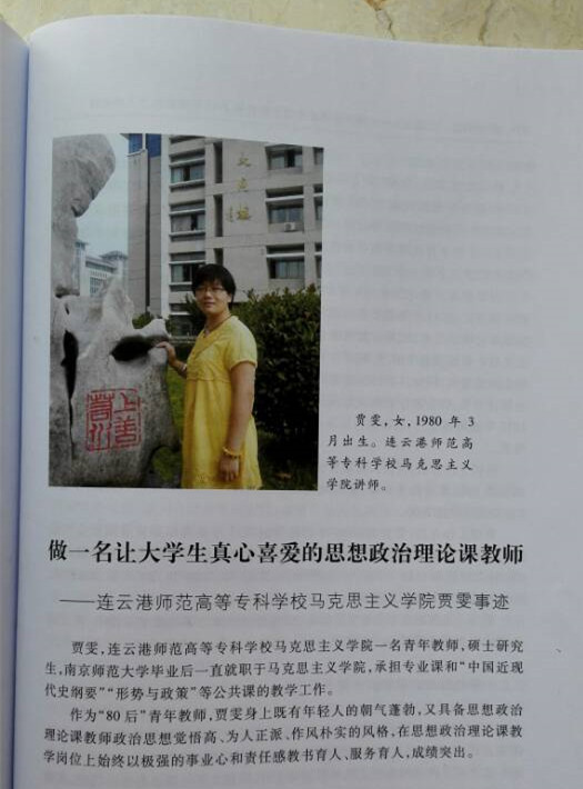 近期,由高等教育出版社出版的《传播真理 仁爱育人——高校思想政治理论课教师2015年度影响力人物事迹》一书正式发行,我校贾雯老师的先进事迹收录其中。据悉,贾雯老师是我省专科学校唯一入选者。