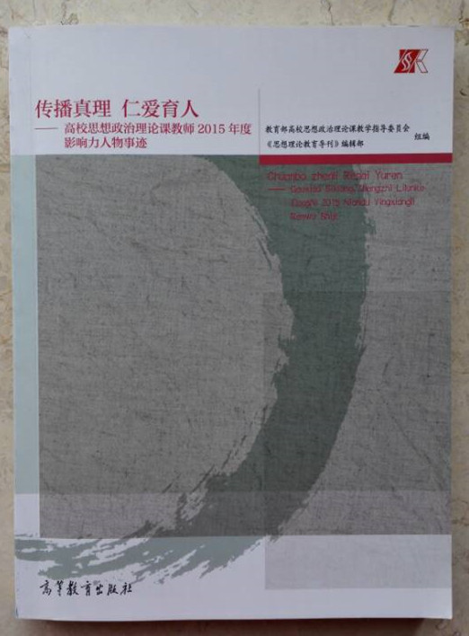 《传播真理 仁爱育人——高校思想政治理论课教师2015年度影响力人物事迹》一书由教育部社会科学司指导、教育部高校思想政治理论课教学指导委员会和《思想理论教育导刊》编辑部组编。该书是由2015年11月至2016年5月推选出的全国高校思政理论课教师2015年度100名年度影响力人物事迹编辑而成,展现了他们对思政教育事业的无限热爱,在平凡的工作岗位上做出的不平凡的成绩,旨在让全体思政教育工作者从中得到熏陶和鼓励,引领大家见贤思齐、积极向上。