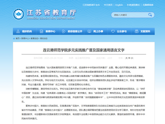 【江苏省教育厅】连云港师范学院多元实践推广普及国家通用语言文字