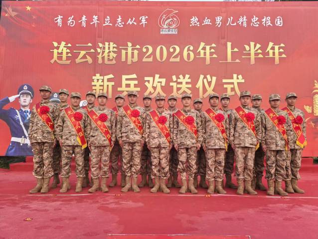3月下旬,连云港市2026年上半年新兵欢送仪式圆满举行。我校19名优秀学子身着戎装、胸佩红花,光荣应征入伍,正式踏上保家卫国的军旅征程,用行动践行新时代青年的使命担当。
