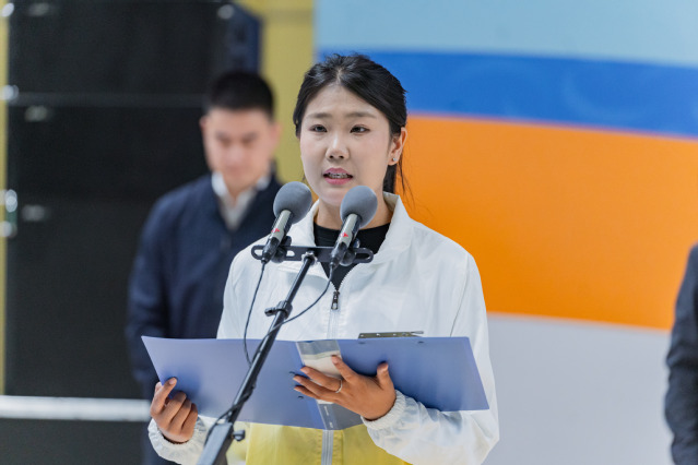 出征仪式上,刘春菊发表动员讲话,高校领导为志愿者代表授旗。我校学生李晓博作为志愿者代表宣读倡议书,号召全体志愿者用责任与担当为省运会添彩、为城市争光,彰显新时代大学生的青春风采与责任担当。